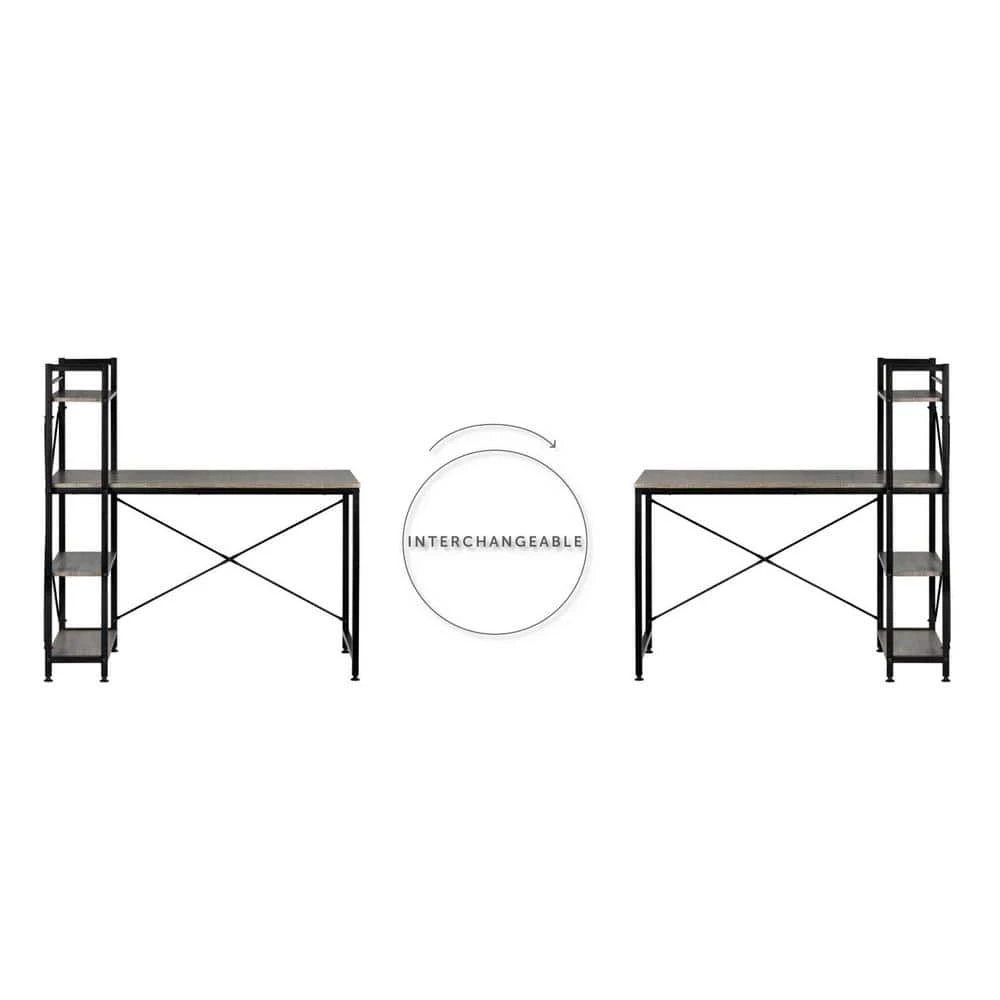 - Bookcase/desk combo: this desk gives you plenty of space for working, along with an upright storage solution: a 3-shelf bookcase, the shelving unit can be placed on the left or right side of the work surface