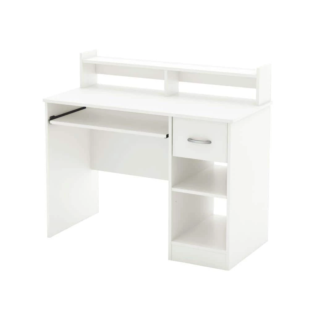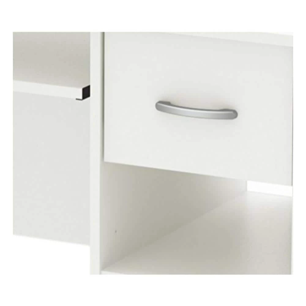 - Under it, you will find a keyboard tray, 1-practical drawer with a silver finish metal handles and a storage compartment divided by an adjustable shelf