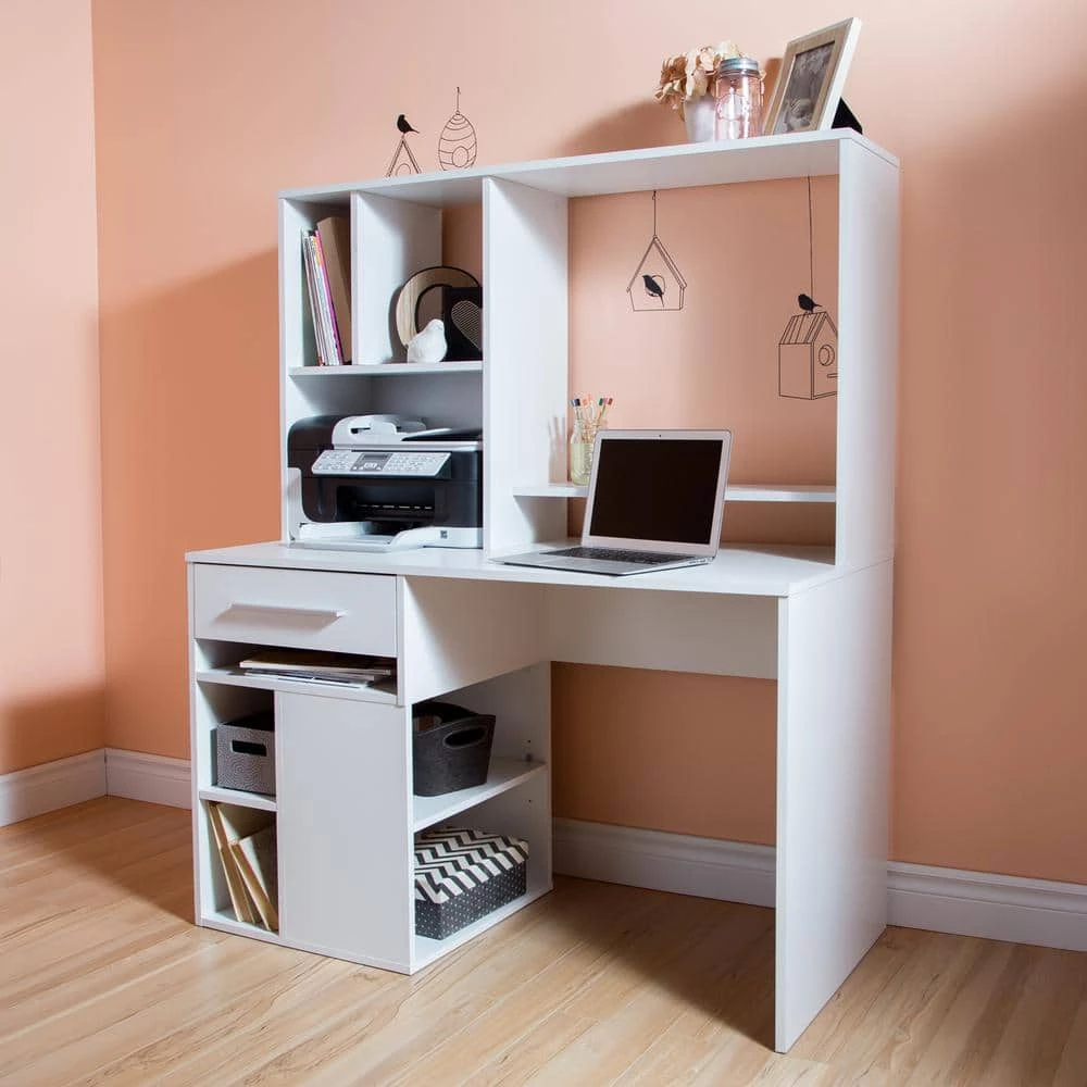 Need a little help organizing your work space. This multi-compartment desk offers a whole range of options to make storage easier. Its open modules are ideal for holding storage baskets, so you can “customize” how you organize things and base it on your needs. The multi-functional hutch was designed to hold a computer monitor, so it frees up space on your work surface and also leaves you the room you need for a printer.