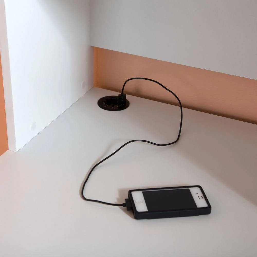 - Holes for passing cords through, with 4 USB ports, for simple, efficient cord management