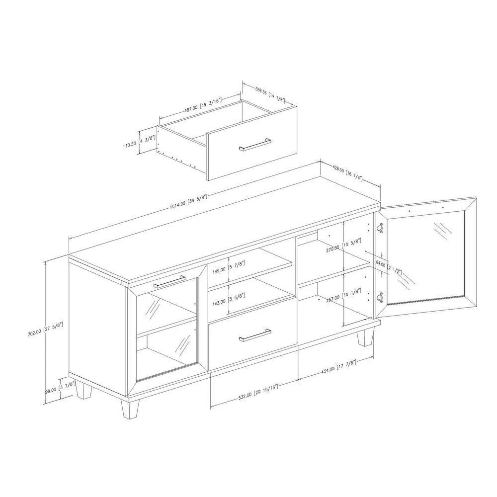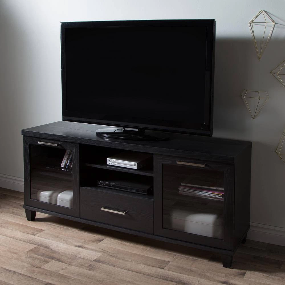 You’ll love this TV stand for its versatile configuration. It features a wide range of open and closed storage options that give you all the space you need for your electronics. Its straight, refined lines, the details on its legs and its glass doors enhance the look of this ergonomic piece.