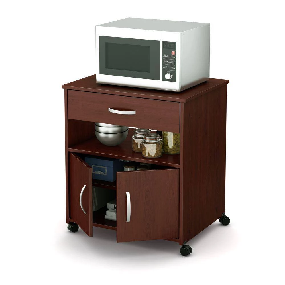 This microwave cart was designed to give you the extra storage space you need to solve the problem of kitchen clutter. This compact yet functional piece – on casters – can easily hold your microwave, recipe books and kitchen accessories so it frees up counter space. The drawer – ideal for storing spices, utensils or even paper – is great for keeping those little things we want out of sight but within easy reach.