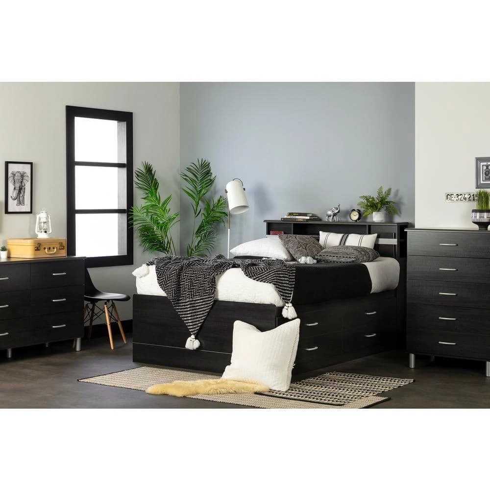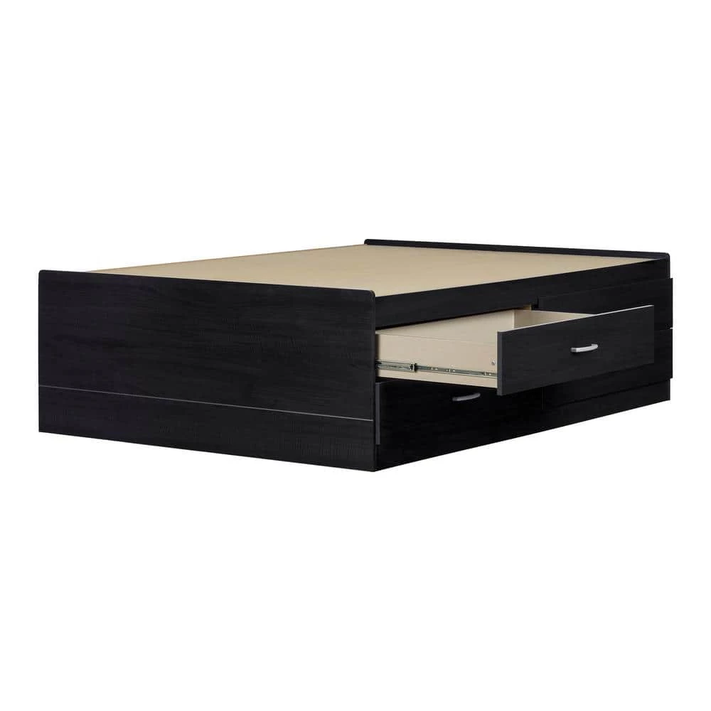 This Cosmos Black Onyx Full-size Storage Bed features 4 large drawers, on one side, with full extension glides. It is a great value for your money as it does not require any box spring. This bed being reversible, drawers can be put either side. Ships in 2 boxes.