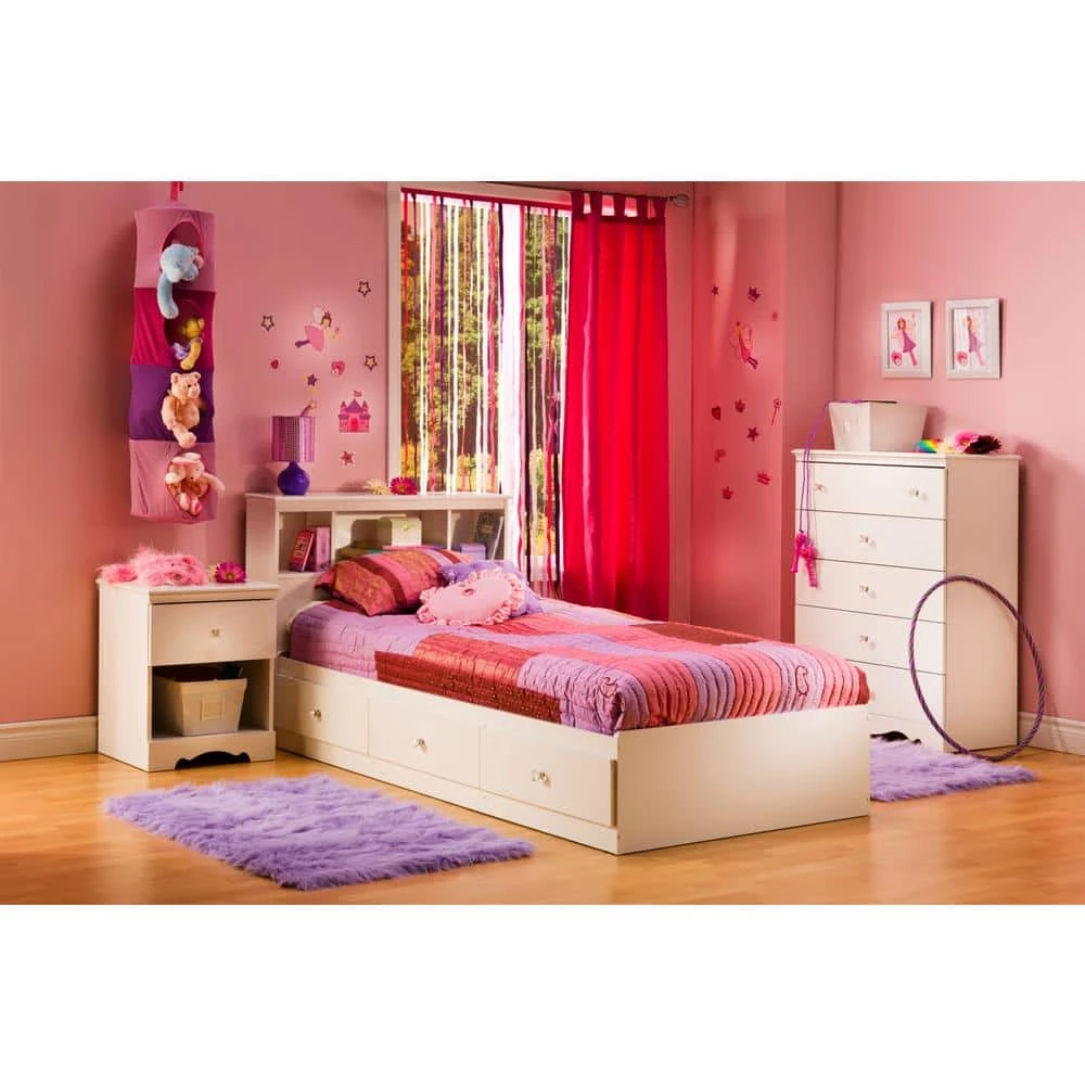 The night stand is both trendy and functional making it well suited bedside storage needs and perfect for your little princess’s room. It features a chic crystal like knob and a decorative kick plate highlighting its feminine country style. It is a great mix between price and style.