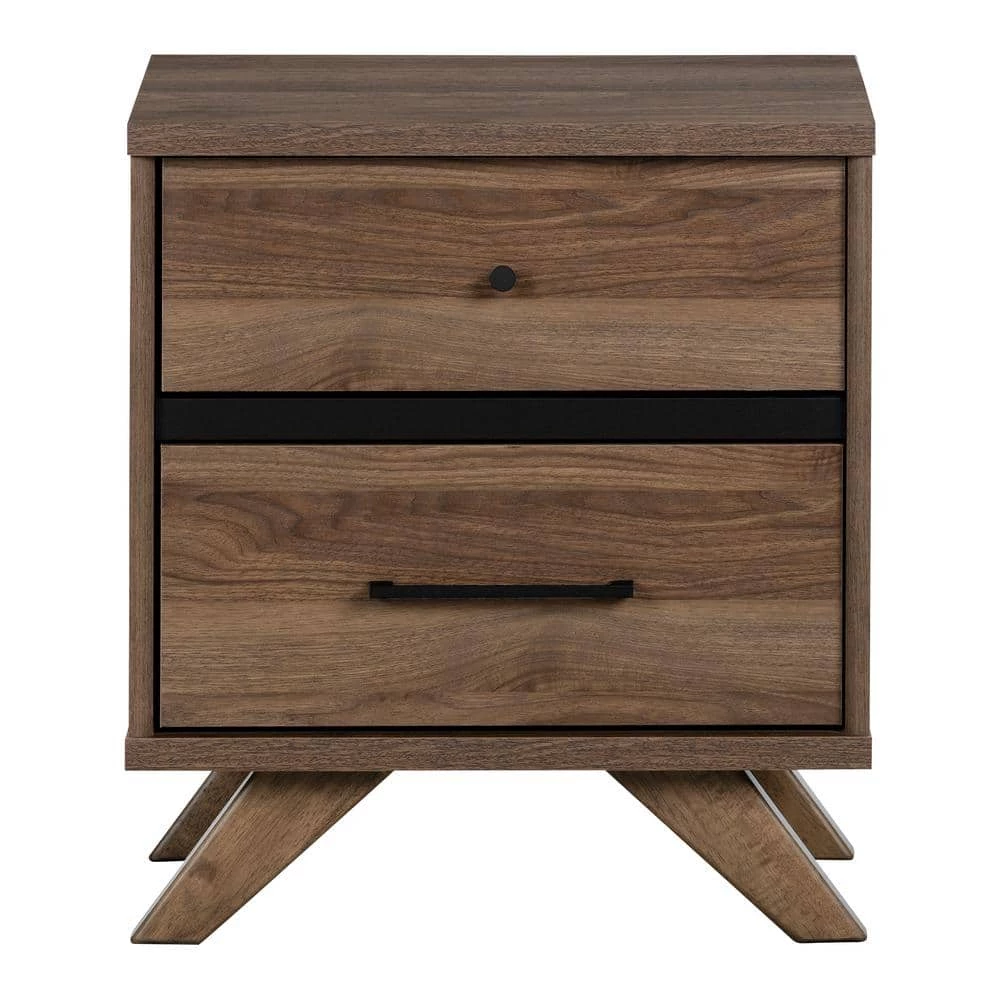 A night stand with character. Here’s a piece they’re sure to notice. With angled wooden legs for an original touch and a decorative molding for contrast, this modern style night stand will look quite elegant next to your bed. A versatile Scandinavian style whatever decor you choose for your bedroom, this night stand from the Flam collection will add a touch of Scandinavian chic. Create a warm, laid back atmosphere. A place to sleep or just relax. This piece will blend easily with pastel colors and a minimalist interior. Keep it simple that’s the key. Storage space this small night stand has two drawers on metal slides for storing whatever you keep by your bed: magazines, reading glasses, a box of tissues, your phone and mobile devices. The drawers, which feature elegant metal knobs and straight handles, open and close smoothly, to allow you easy access to your things. Each drawer can hold up to 25 lbs. Keep the space around your bed neat and tidy. 5-year limited guarantee. South Shore is proud to stand behind this 2-drawer nightstand with an exclusive 5-year limited guarantee. All our products meets or exceeds North American safety standards and our packaging are tested and certified to reduce the risk of damage during shipment. This item is shipped in 1 box, make sure to have a friend with you. Assembly is required by 2 adults and tools are not included. This product is made with laminated particleboard. Accessories not included.