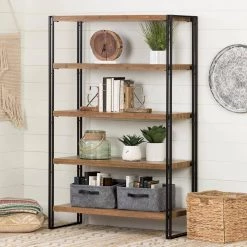 61.5 in. Rustic Bamboo Metal 5-shelf Accent Bookcase with Open Back by South Shore