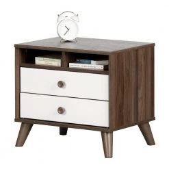 Yodi 2-Drawer Natural Walnut and Pure White Nightstand by South Shore