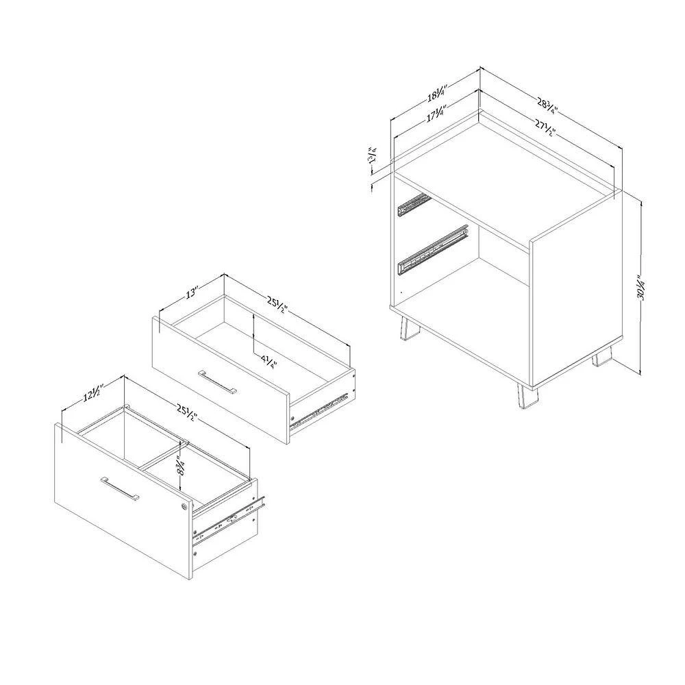 This lateral file cabinet is the ultimate small piece for your office. It has a smaller footprint, but it’s big enough to solve all the storage problems in your work space. It features two large drawers, including a file drawer you can lock with a key, which can hold 8½ in. x 11 in. or 8½ in. x 14 in. folders – just the thing for those highly confidential files that should have more security. The top surface is also just the right size for a printer, which frees up a little more of your work space. Choose this great little piece that’s both trendy and practical. The raised rim will keep your things from falling off, while giving the cabinet a more up to date look. We also like the angled metal legs and slim handles, which are a part of its much sought out Contemporary style. All our products meets or exceeds North American safety standards and our packaging are tested and certified to reduce the risk of damage during shipment. This item is shipped in 1 box, make sure to have a friend with you. Assembly is required by 2 adults and tools are not included. If you have questions regarding this product or need assistance do not hesitate to contact South Shore Furniture 7 days support. You can reach customer support by phone at 1.800.290.0465 or you may chat with an agent live at: www.southshorefurniture.com. This product is made in North America with Laminated Particleboard and Metal.
