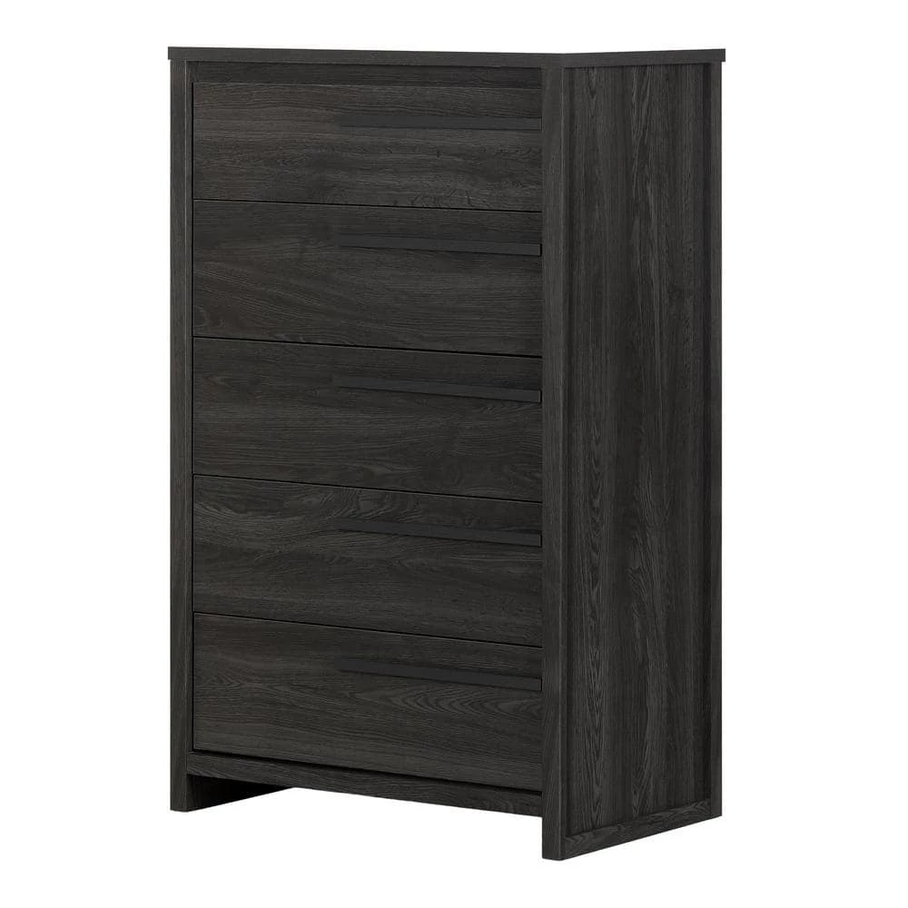 This 5-drawer chest, with its trendy urban look, lets you create a cozy and distinctive ambiance in your bedroom. Its straight lines and pretty handles make it unique in its genre, and the mouldings that frame this chest complete its modern look, for A splendid effect.The dimensions of this chest are ideal for anyone who needs storage, but doesn’t have a lot of free space and its room. Because it is in made in height, this chest won’t take much space in your bedroom. But one thing is sure: with its 5 large drawers, you will be able to store all of your clothes and accessories.