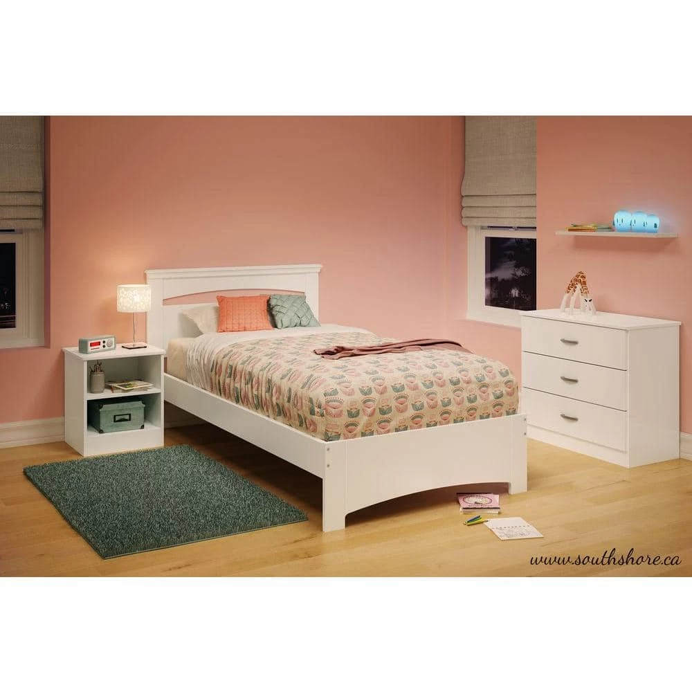 Create a bedroom that will meet your child’s needs for years to come with this twin bed set (39 in.). Its look, which will never go out of style, works well with various types of decor, so you can change your little one’s bedroom to suit his or her tastes without having to think about replacing the furniture. This bed was designed with both maximum safety and a trendy look in mind, so you can set up a well ordered and highly practicle room that reflects the taste of the times while creating a pleasant, comfortable space for your child.