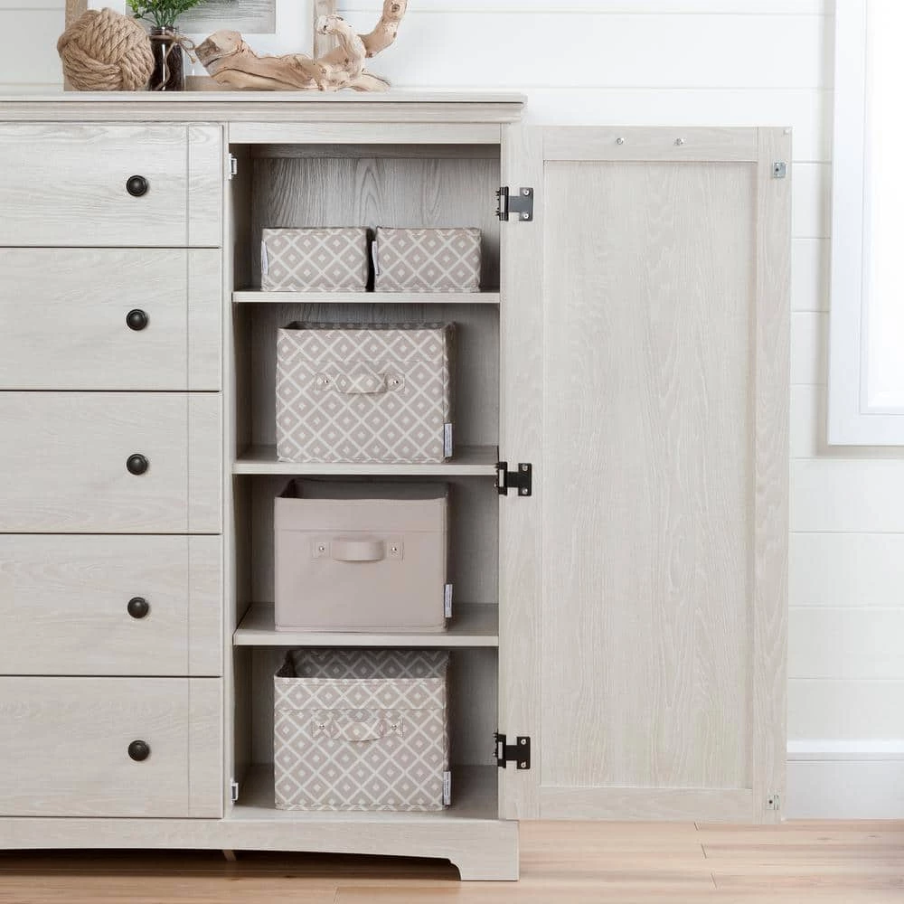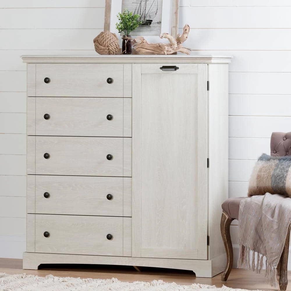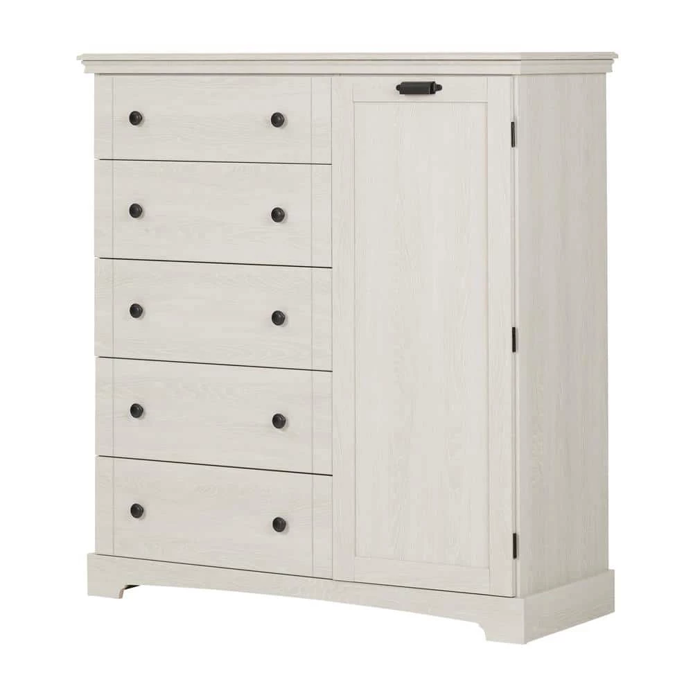 This charming dresser is all you would want and more.with 5 spacious drawers and a cabinet door, this elegant design offers a great amount of storage, making it a perfect fit for any room in your home. The metal knobs and metal pull handle detailing add additional style making this piece stand out.There’s no need to compromise.style for storage.This dresser dresser features 5 spacious drawers with smooth metal drawer slides, as well as a large cabinet door that houses 3 adjustable shelves.Now you can store bulky items or bins out of sight behind a sturdy, 3-hinged cabinet door.Because. it’s such a focal point, this dresser can live anywhere in your home, wherever you need additional storage.Helping you to stay organized, this beautiful dresser inspires a tidy space.