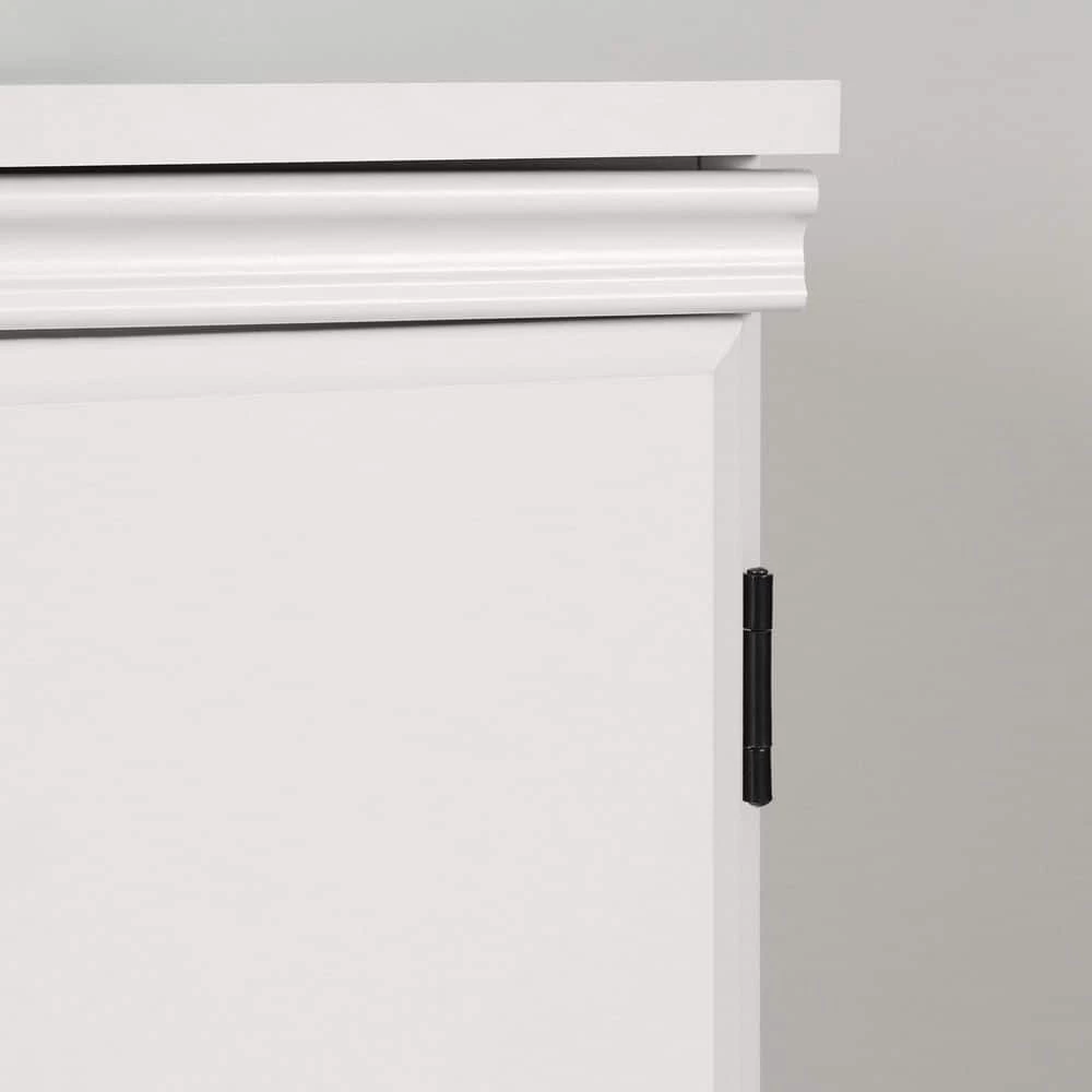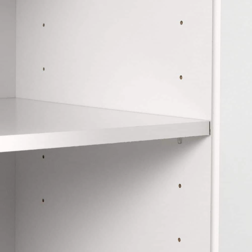 - Behind the door: 2 storage spaces separated by 1 adjustable shelf