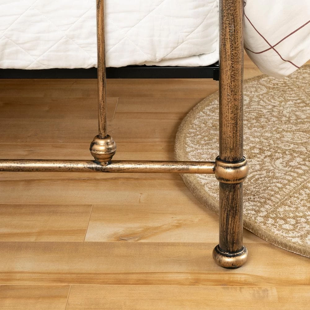Recreate the inviting atmosphere of a country house in your bedroom with the refined look of this metal bed. Its curves will give your decor.a warm, friendly look. Opt for.comfort with this Traditional style furniture that’s sure to bring you sweet dreams.The solid construction of this bed means you don’t need a box spring. You can put your mattress (not included) right on the base and you’re ready to sleep. So this bed is also a money saver. You get everything – headboard, bed and footboard – in one box, which makes your life easier.The frame on this bed is made of sturdy metal and strong wooden slats, for.effective airing underneath. Extra legs in the center give you better support.