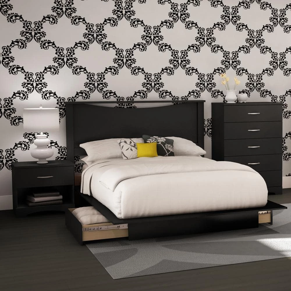 The step one 4-piece bedroom set in pure black finish combines elegance and minimalist lines. It creates a simple but efficient contemporary decor. The contrast between the dark finish and the sober silver finish metal handles will complete this timeless bedroom set.