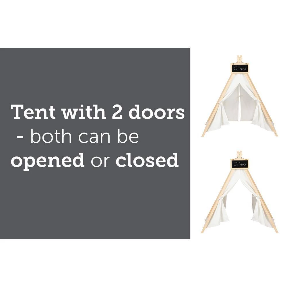 - Chalkboard with chain included: hang the little board on the front of the tent, so visitors know whose hide-out they’re going into, write a funny message or draw something on it