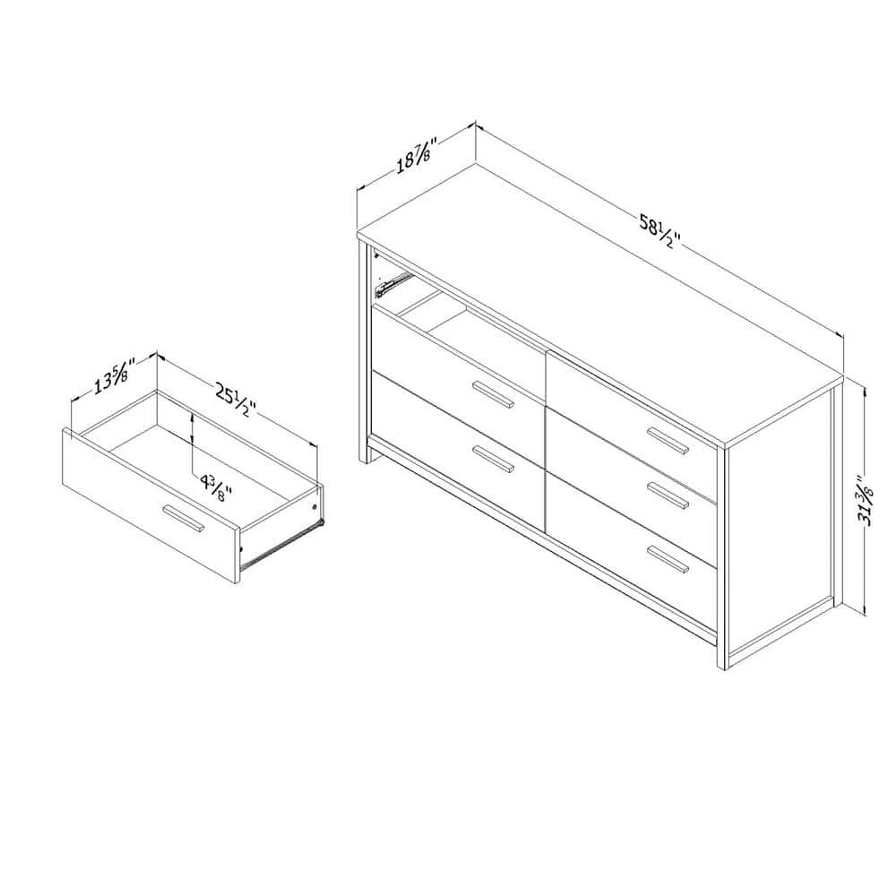 This 6-drawer double dresser, with its urban look, lets you create an elegant, distinctive ambiance in your bedroom. The drawers provide maximum storage space. The unique looking clean lined handles give this piece a lot of personality.