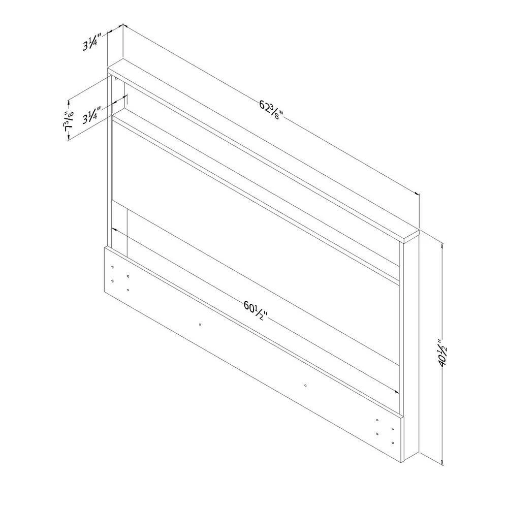 – Built-in storage shelf -This Tao headboard features a long, shallow shelf for your cell phone, your watch, or anything else youd like to have close at hand. Its useful and also looks great the relief created by this shelf gives the piece a superb original touch. This headboard will be noticed once you set it up. – Can be attached to various beds -The Tao headboard can be attached to a standard metal bed support. The double/queen size headboard works with either type of bed. When attached to the smaller size bed, the extra width on either side gives the piece a more striking look and extends to the edge of your comforter. On the larger bed, the headboard is the same width as the bed. – 5-year limited guarantee -South Shore is proud to stand behind this headboard with open storage space with an exclusive 5-year limited guarantee. Shop with confidence knowing your purchase is always covered. All our products meets or exceeds North American safety standards and our packaging are tested and certified to reduce the risk of damage during shipment.This item is shipped in 1 box, make sure to have a friend with you..Assembly is required by 2 adults and tools are not included. If you have questions regarding this product or need assistance do not hesitate to contact South Shore Furniture 7 days support.This product is made in North America with laminated particleboard.Bed, mattress, bedding and other accessories not included.