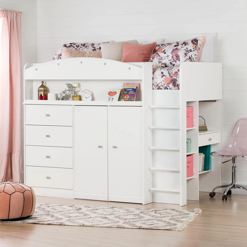 Your little princess deserves no less than a palace. The Tiara loft bed is everything she could wish for: a desk for doing homework, storage for all her clothes, a space on the upper level for her bedtime reading and alarm, and best of all a real, secret hiding place where she can play in peace and quiet. This little castle is, of course, decorated with pretty jewel like handles truly the stuff of dreams. You can’t build a castle with a simple snap of the fingers; you’ll need approximately 5 hours to assemble the parts.