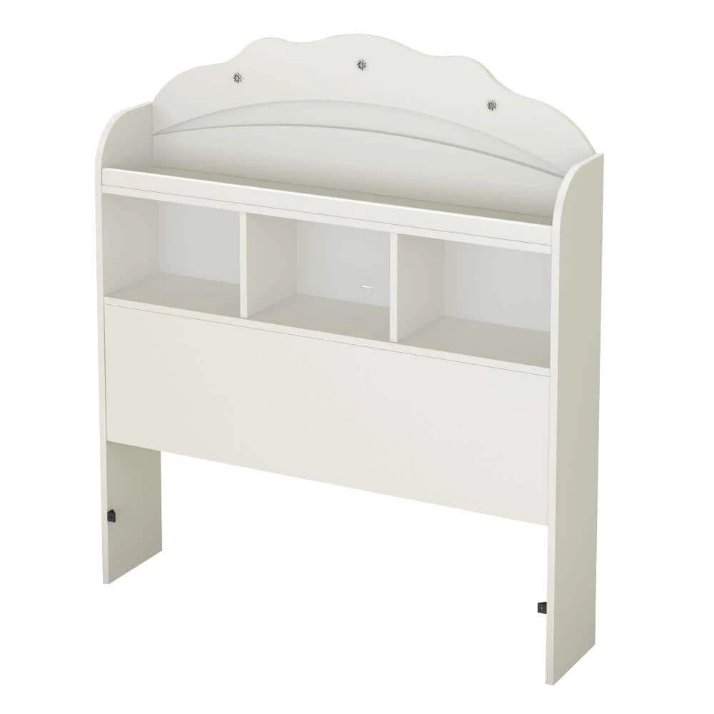 This Tiara Pure White Twin Bookcase Headboard features a tiara-like top section that both younger and older girls will certainly love. It is a convenient option for keeping everyday essentials within reach. It features a hole for easy wire management, and it can be attached to the Tiara storage bed to create a complete bed.