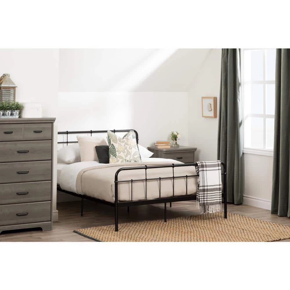 Add some personality to your bedroom with this oh-so-trendy metal bed, designed in the industrial style, thatll never be out-of-date. It contrasts nicely with the rest of the furniture, adding a little character to the room and the tiny details winding around the crossbars, lend a great touch of chic. Item includes the full bed, with headboard and footboard.