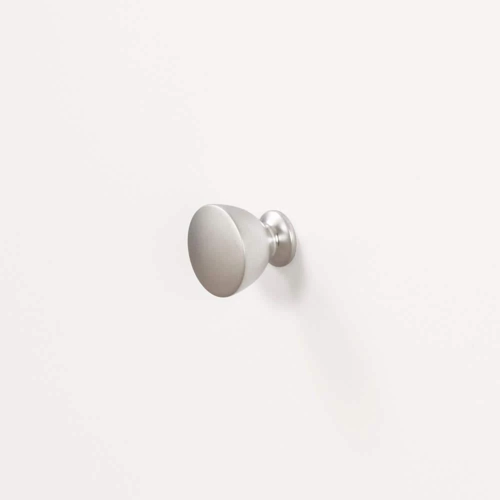 - Metal knobs with a nickel finish