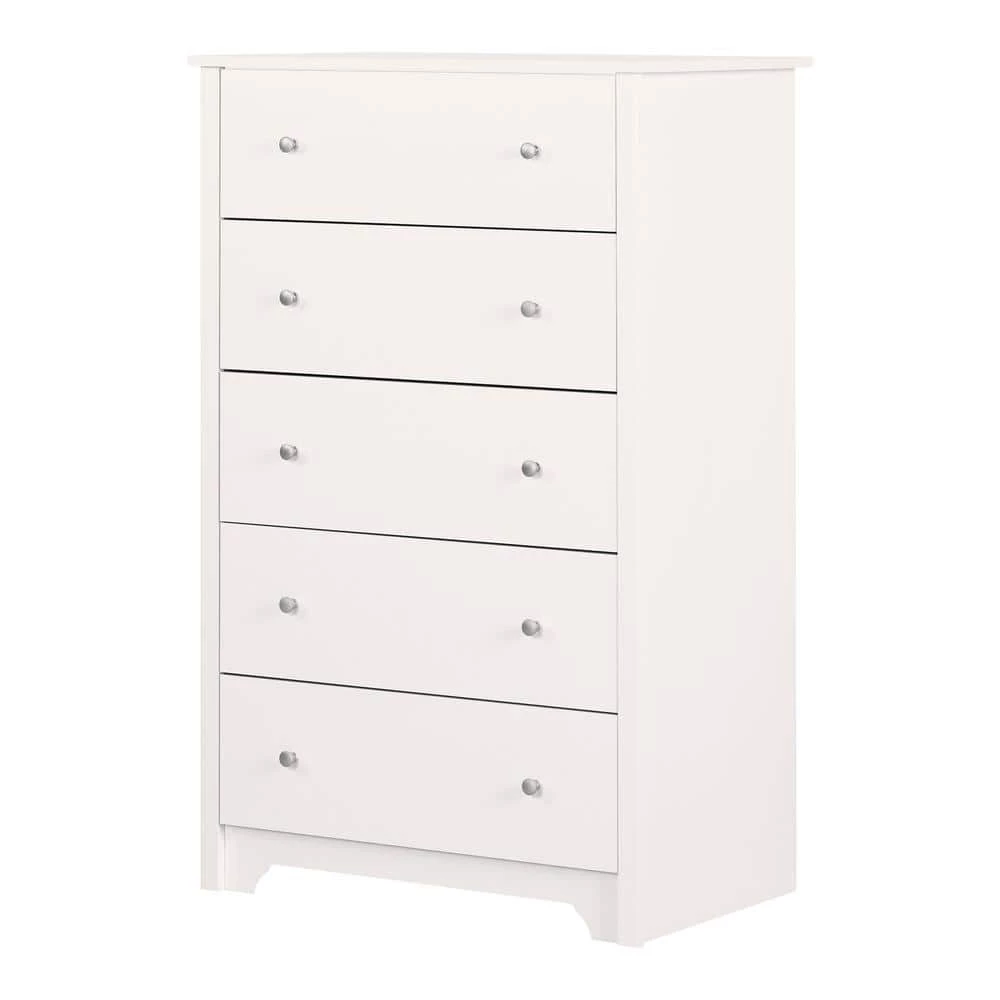 The Bel Air Pure White 5-Drawer Chest has a timeless look and blends easily in any decor. Drawer handles feature an elegant nickel finish. Its transitional style is perfect in juvenile, teen and adult bedroom. It goes well with modern as well as with traditional style.