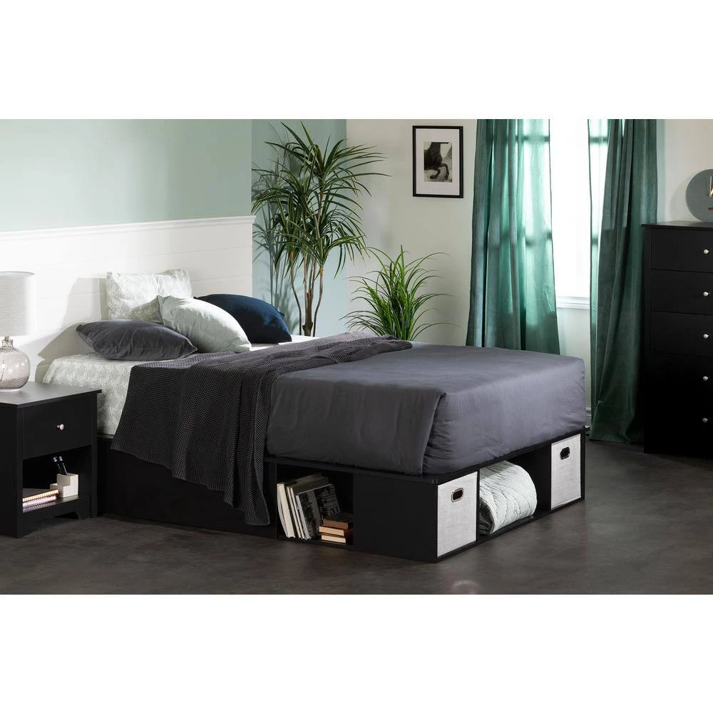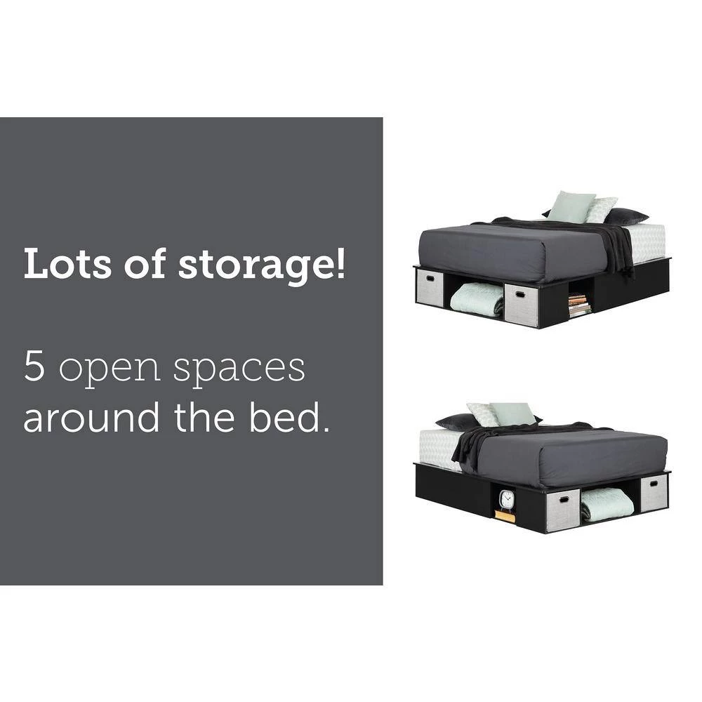 This platfor. bed.makes great use of what’s usually a in. dead in. space, underneath your bed. The five open space, give you extra room for.your beding, clothes and any other accessories. To make it easier (and for.more style), the bed.comes with 2-storage baskets.This bed is not only functional, but also really trendy. Its modern style can work.with any type of decor. while its solid, sturdy look draws attention instantly. It’ll be the stand-out piece in your bedroom.Great news. You can put your mattress right on the solid bed.frame. No need to spend money on a boxspring.