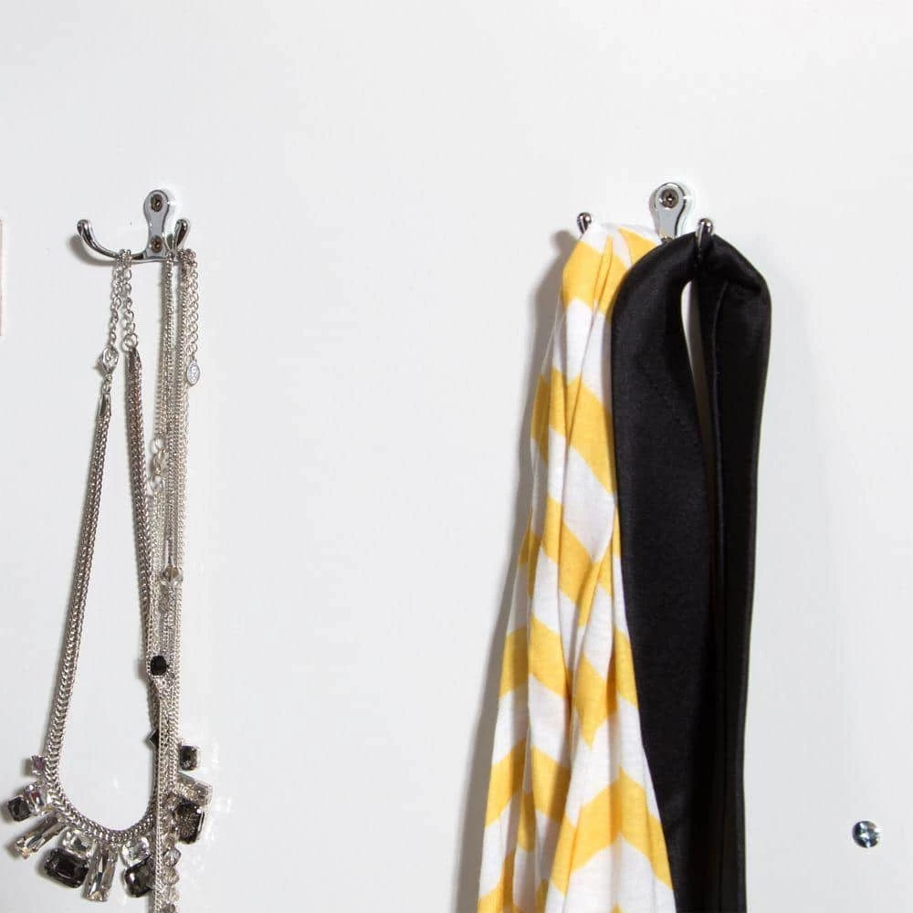 - 2-hooks behind the door for hanging scarves, ties and other types of neckwear
