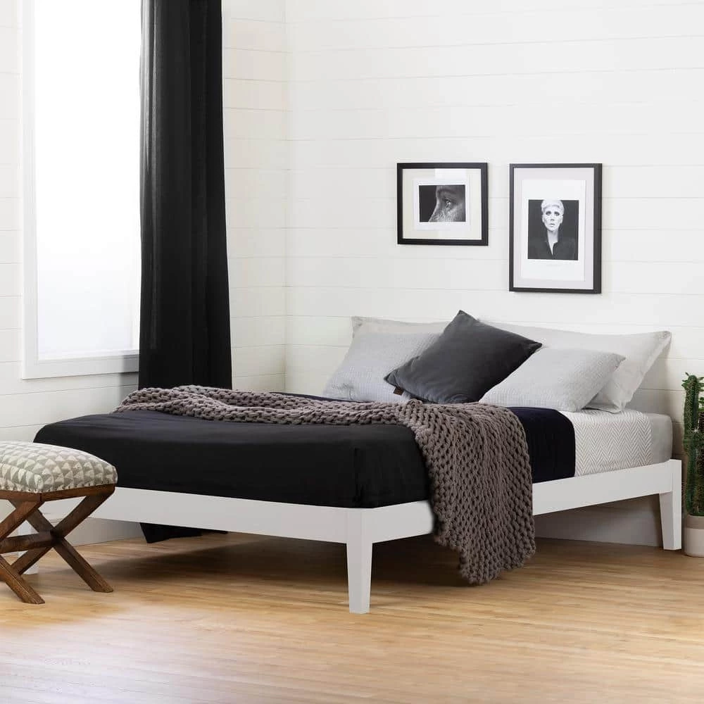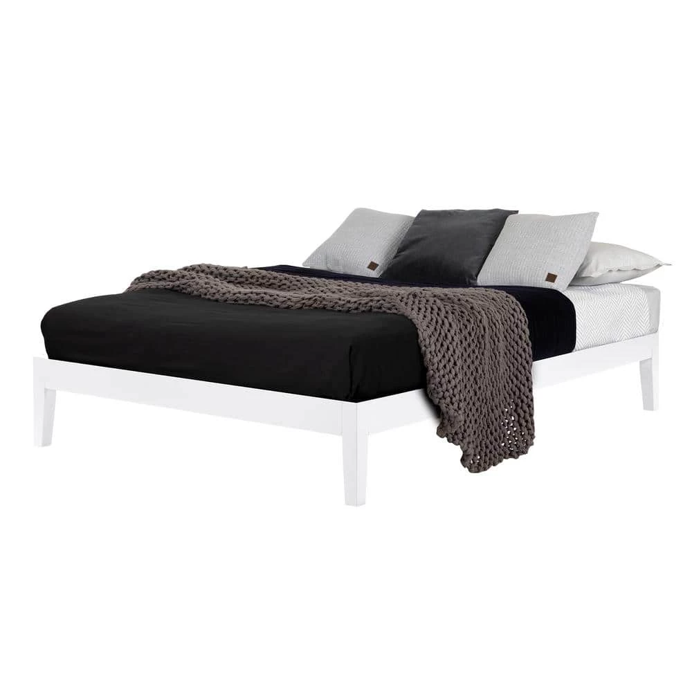 Vito Pure White Queen Size Platform Bed 62.5 in. W by South Shore