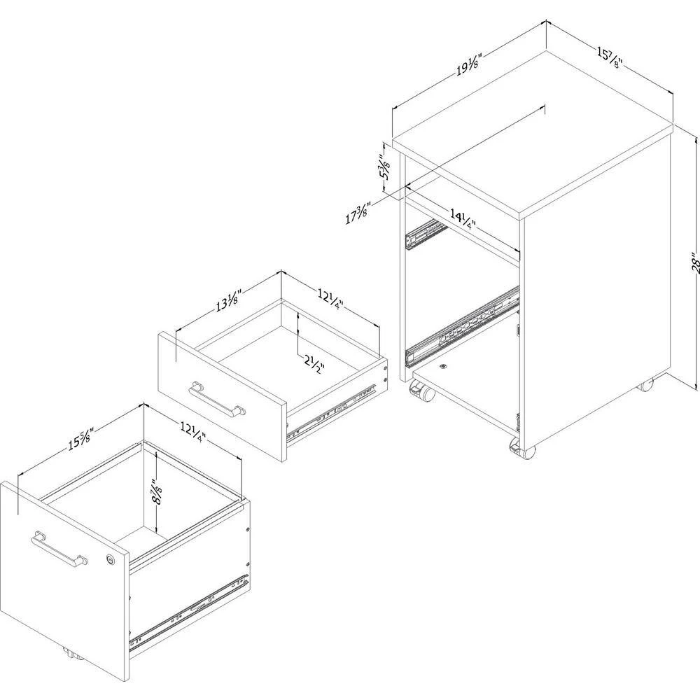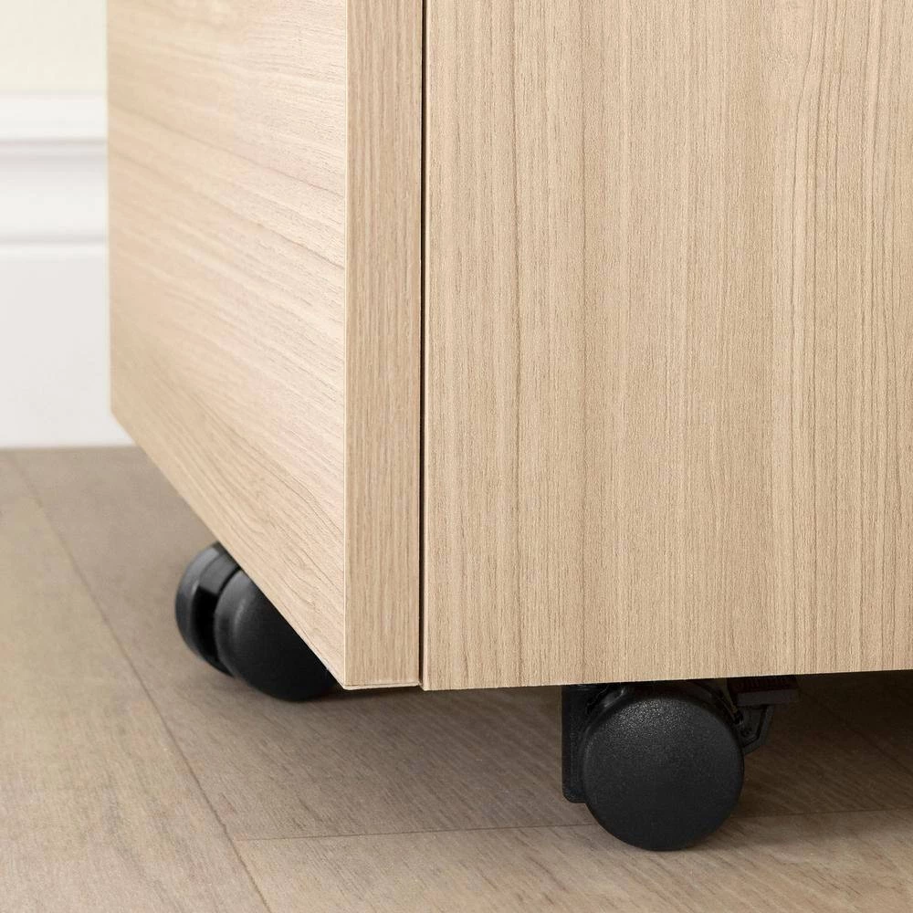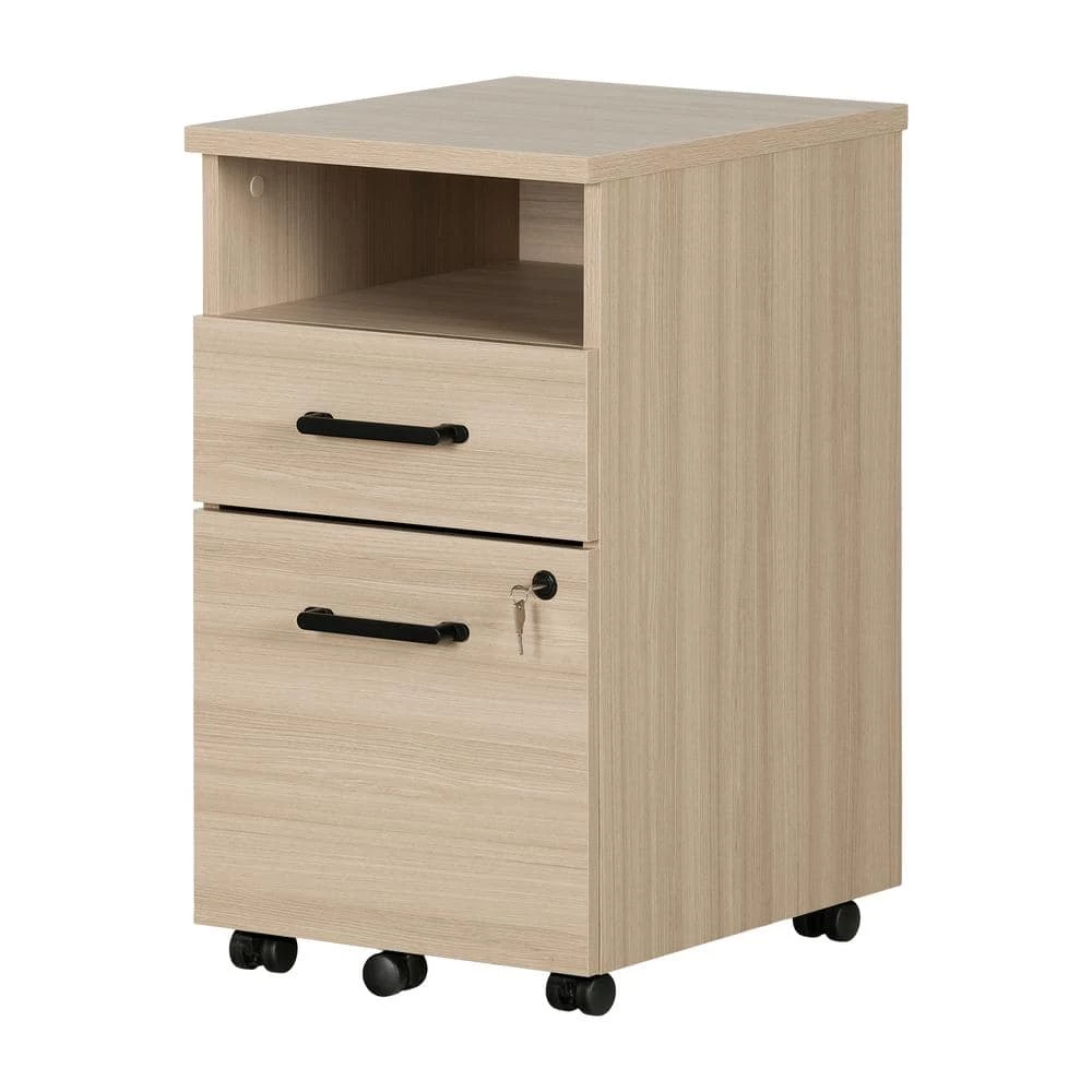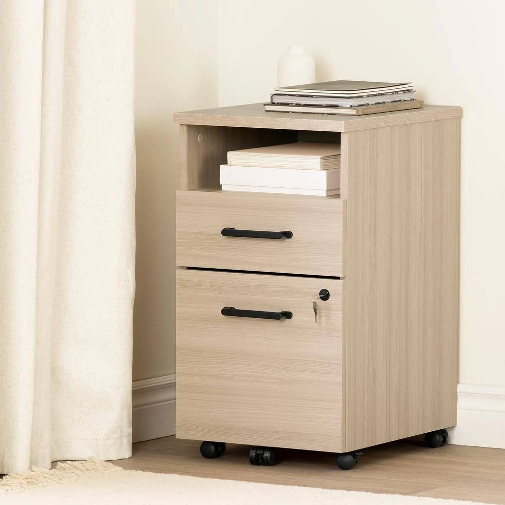 Need more storage space in your work area? This cabinet on five wheels is the perfect solution. You can move it around anytime you like, to whatever spot in the room works best for you. The small open space can hold binders, notebooks and other items you use regularly, so you have them within reach. The small drawer can be used for anything you would like to keep out of sight. The large file drawer is great for properly organizing your important documents and folders. So you’ll find what you’re looking for more quickly and work even more efficiently and since this drawer can be locked with a key, you can be sure your documents are secure. This little cabinet is a real “must have” in any work area. We love the contemporary decorative details – like the rectangular metal handles – on this little file cabinet. The look is fairly simple, so you can easily combine it with your current office furniture. And it’s finished all around, which means you can move it wherever you like knowing it’ll look great from any angle. All our products meets or exceeds North American safety standards and our packaging are tested and certified to reduce the risk of damage during shipment. You can reach customer support by phone at 1.800.290.0465 or you may chat with an agent live at: www.southshorefurniture.com. This product is made in North America with Laminated Particleboard.